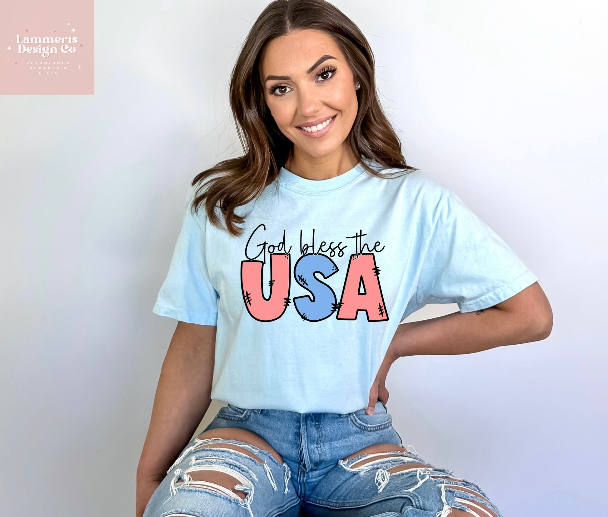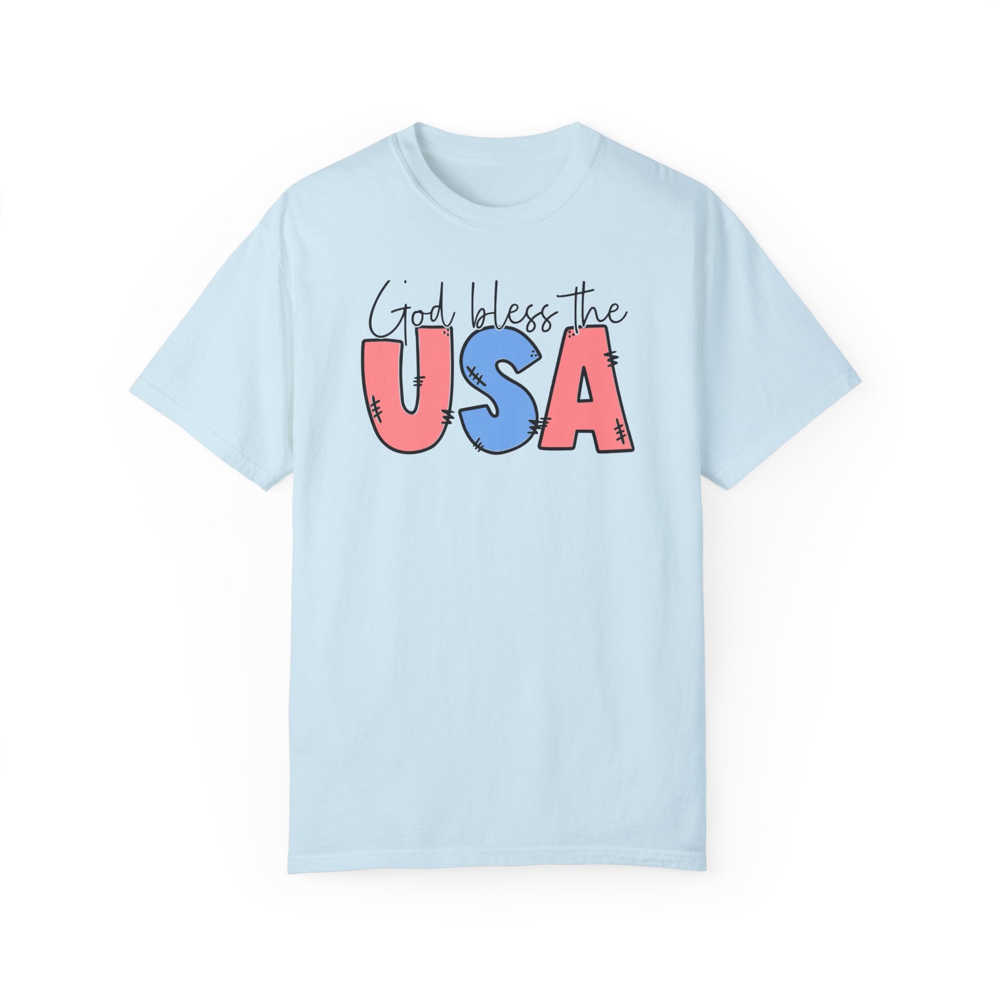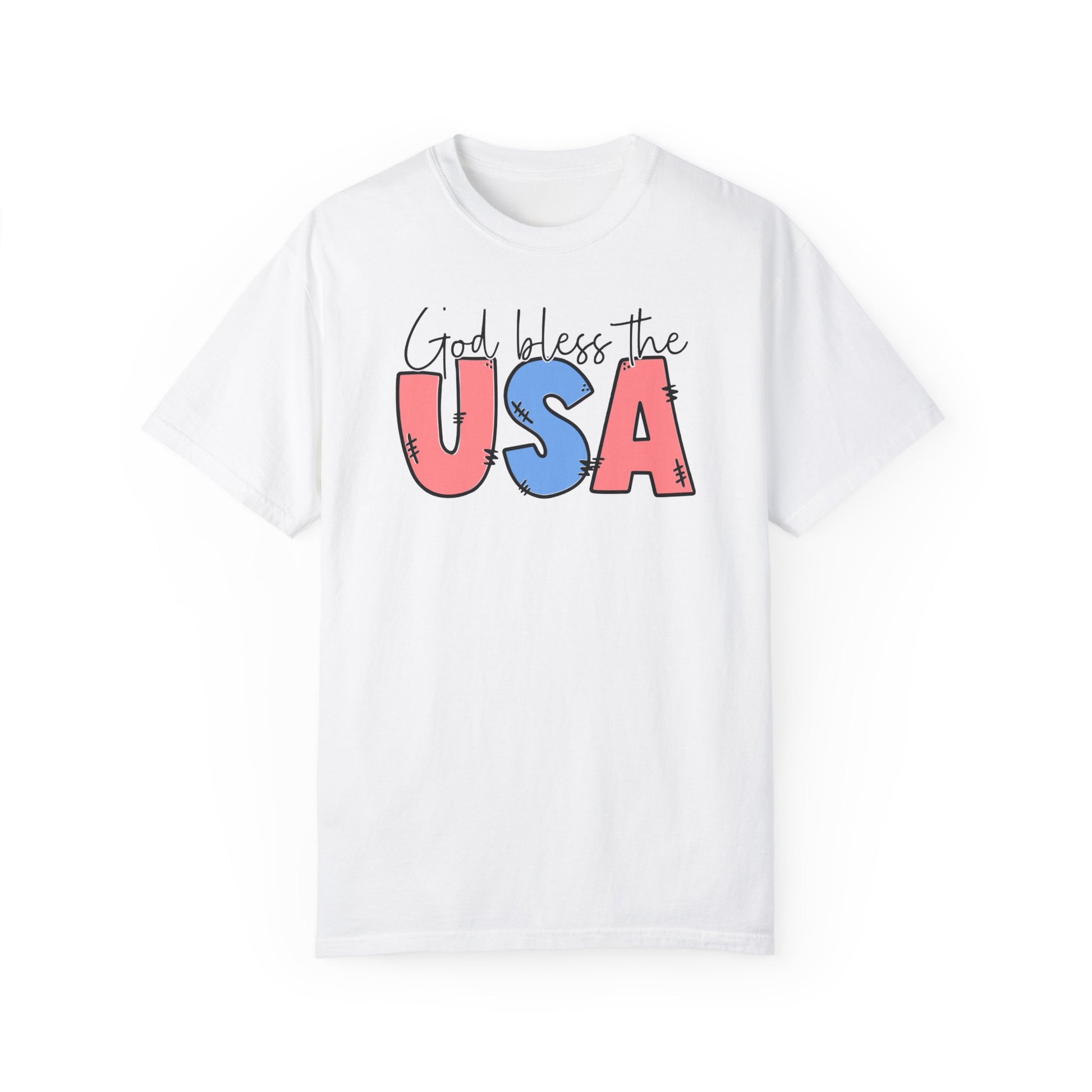 God Bless The USA Tee is a must-have for every proud American. Show your patriotism with this stylish and comfortable tee featuring the iconic phrase 'God Bless The USA'. Made from high-quality cotton, this tee is perfect for everyday wear or special occasions. Whether you're celebrating Independence Day or just want to show your love for the country, this tee is a great choice. Available in various sizes to ensure the perfect fit for everyone.
