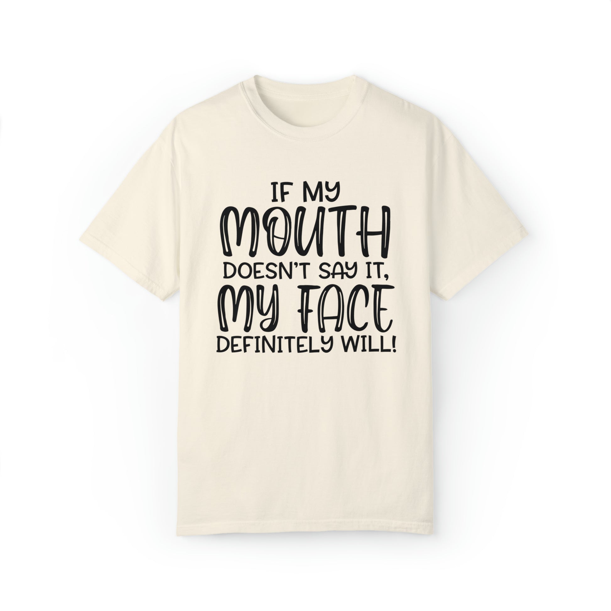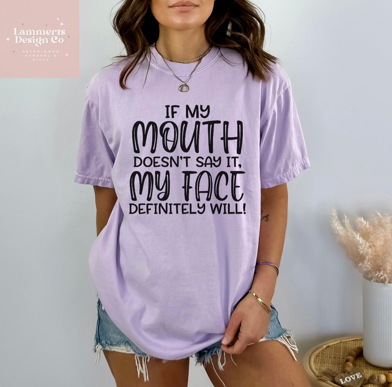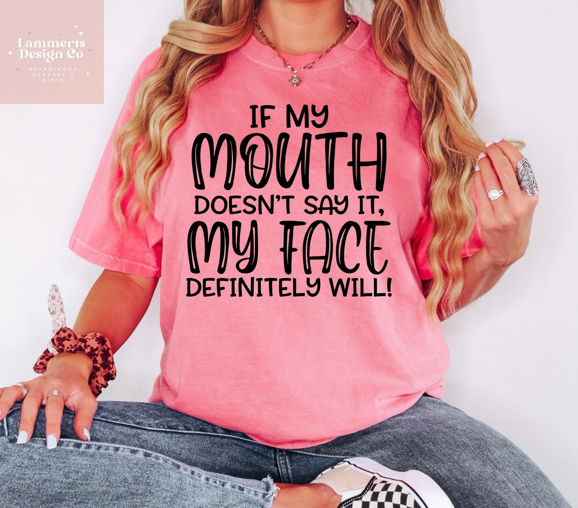 If you're looking for a hilarious shirt that tells it like it is, look no further than the "If My Mouth Doesn't Say It My Face Definitely Will" tee. Crafted from comfortable materials and designed with a modern fit, this shirt is perfect for any woman who loves to mix humor with fashion. The words on the shirt say it all, making it an ideal choice for anyone who doesn't have a filter.