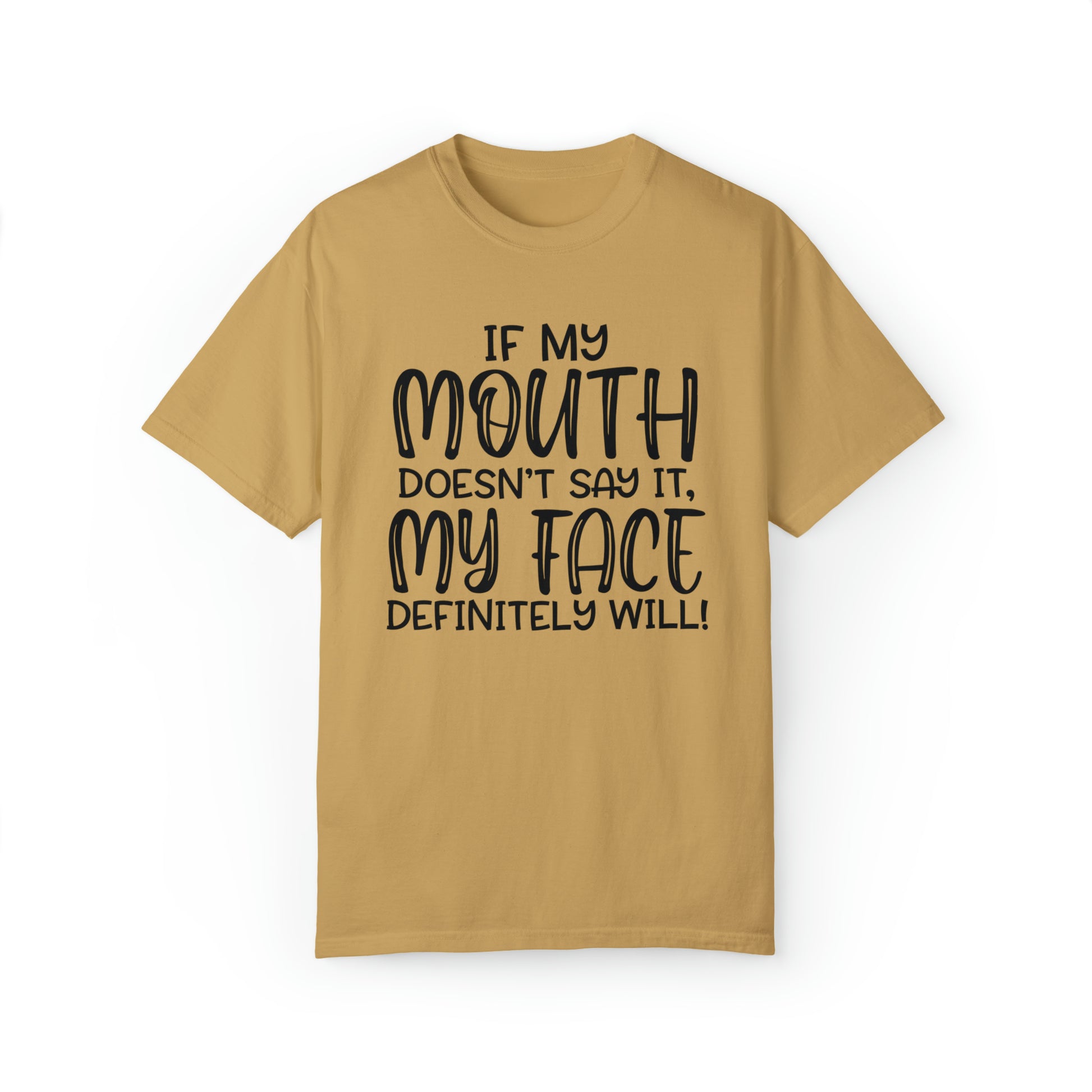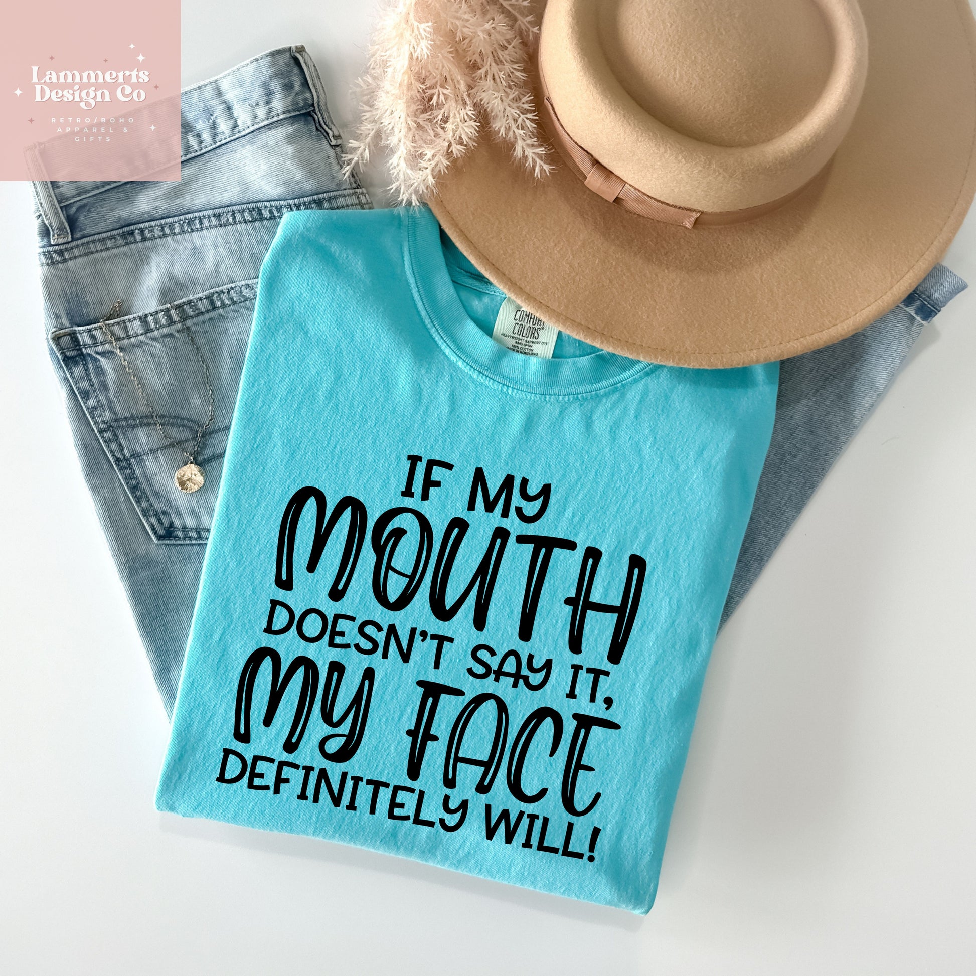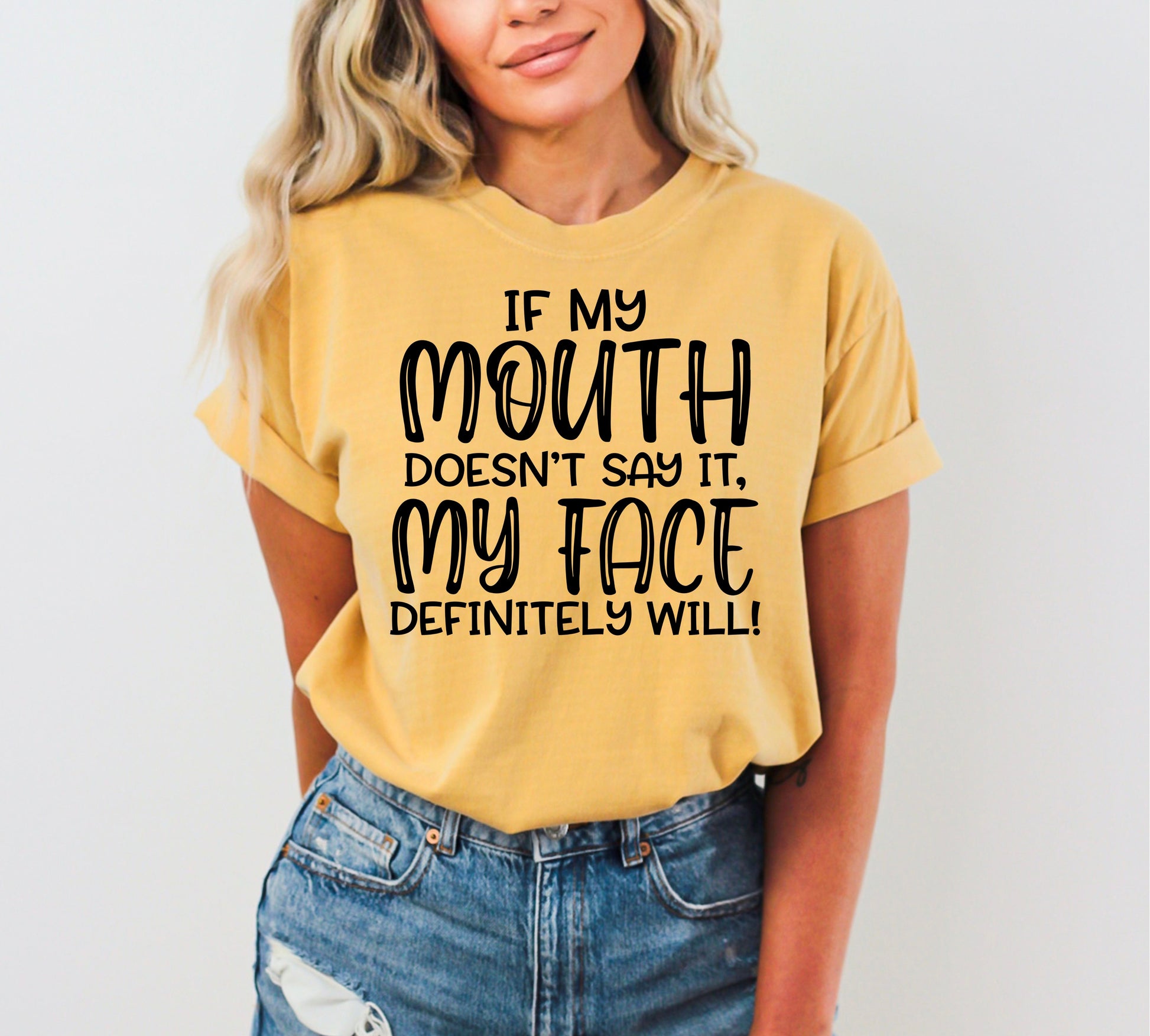 If you're looking for a hilarious shirt that tells it like it is, look no further than the "If My Mouth Doesn't Say It My Face Definitely Will" tee. Crafted from comfortable materials and designed with a modern fit, this shirt is perfect for any woman who loves to mix humor with fashion. The words on the shirt say it all, making it an ideal choice for anyone who doesn't have a filter.
