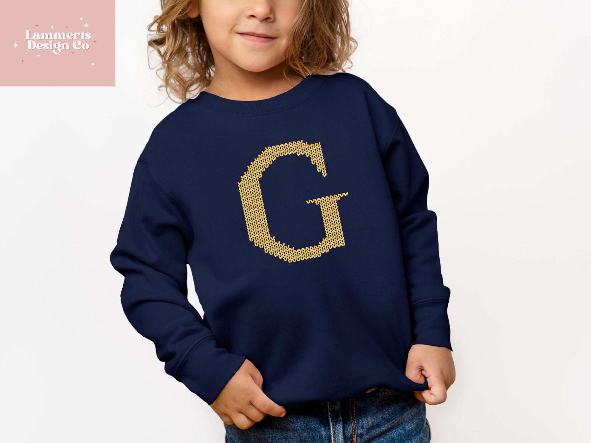 This G Initial Crewneck Sweater is the ultimate combination of warmth, durability, and adorable style—perfect for your toddler's holiday adventures!