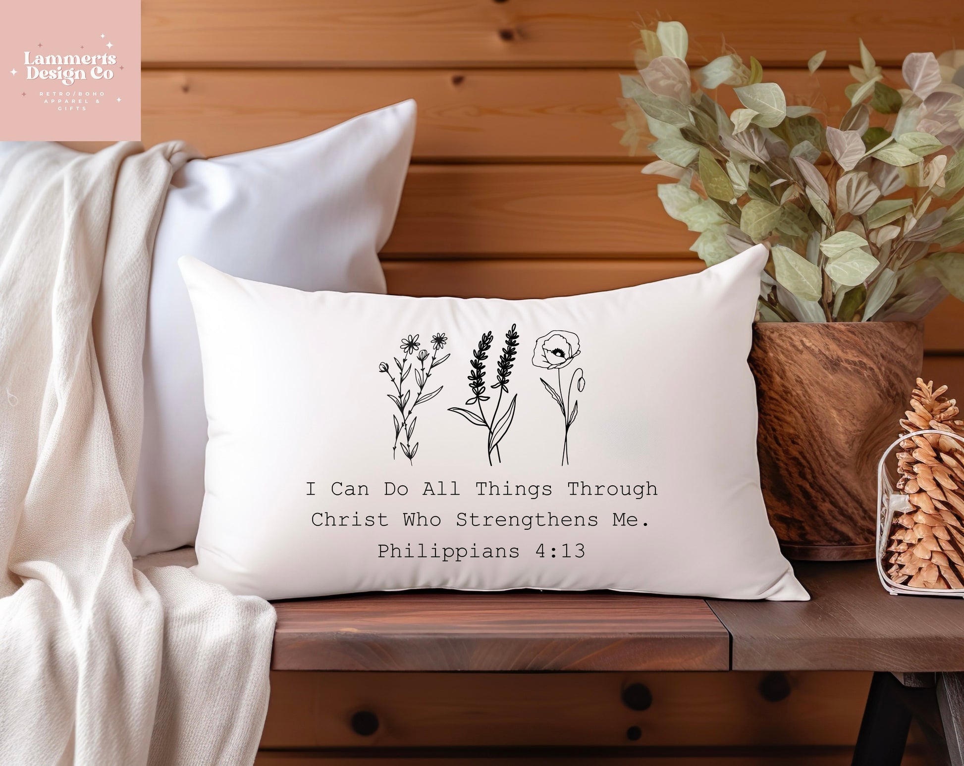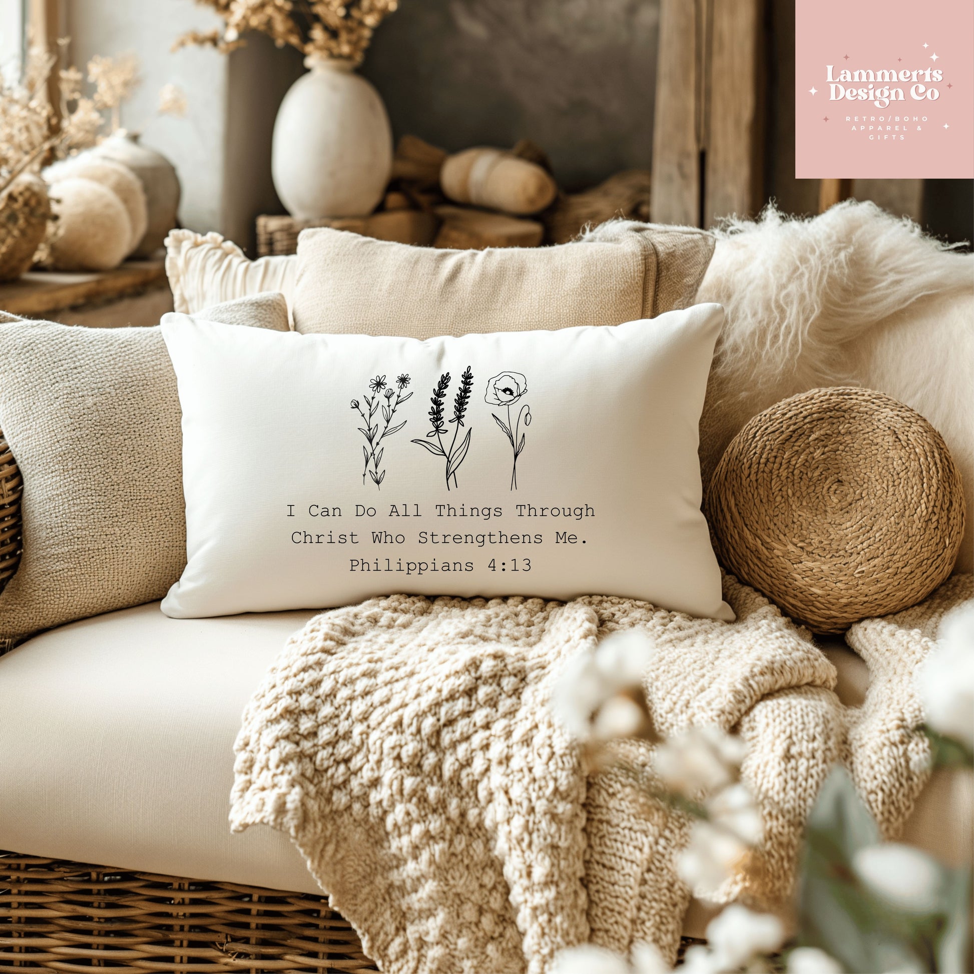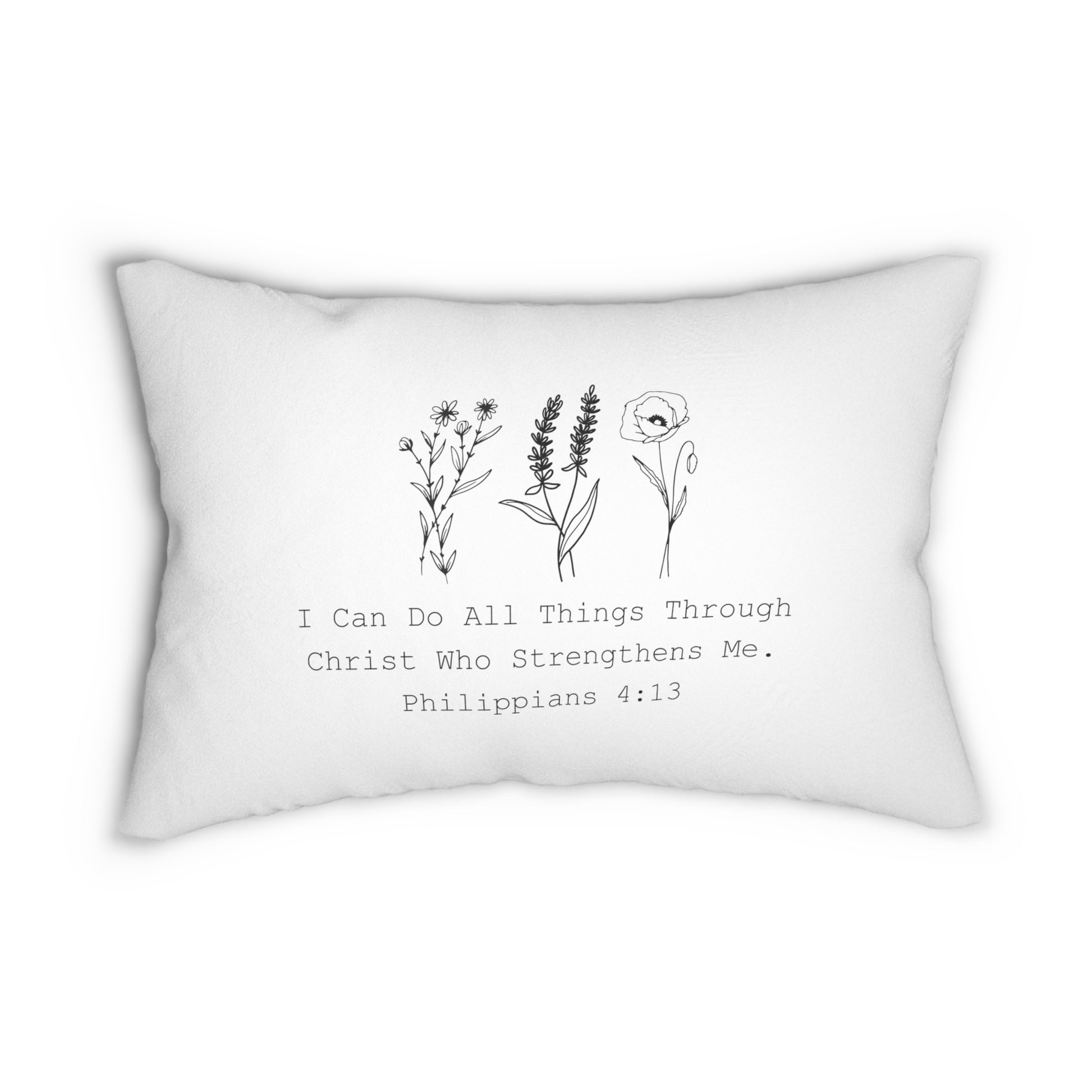 Introducing our inspiring "I Can Do All Things Through Christ Who Strengthens Me" 20x14 Lumbar Pillow, a radiant addition to your Christian decor collection. Crafted with care, this lumbar pillow features a powerful message drawn from Philippians 4:13, serving as a beautiful reminder of faith and strength.