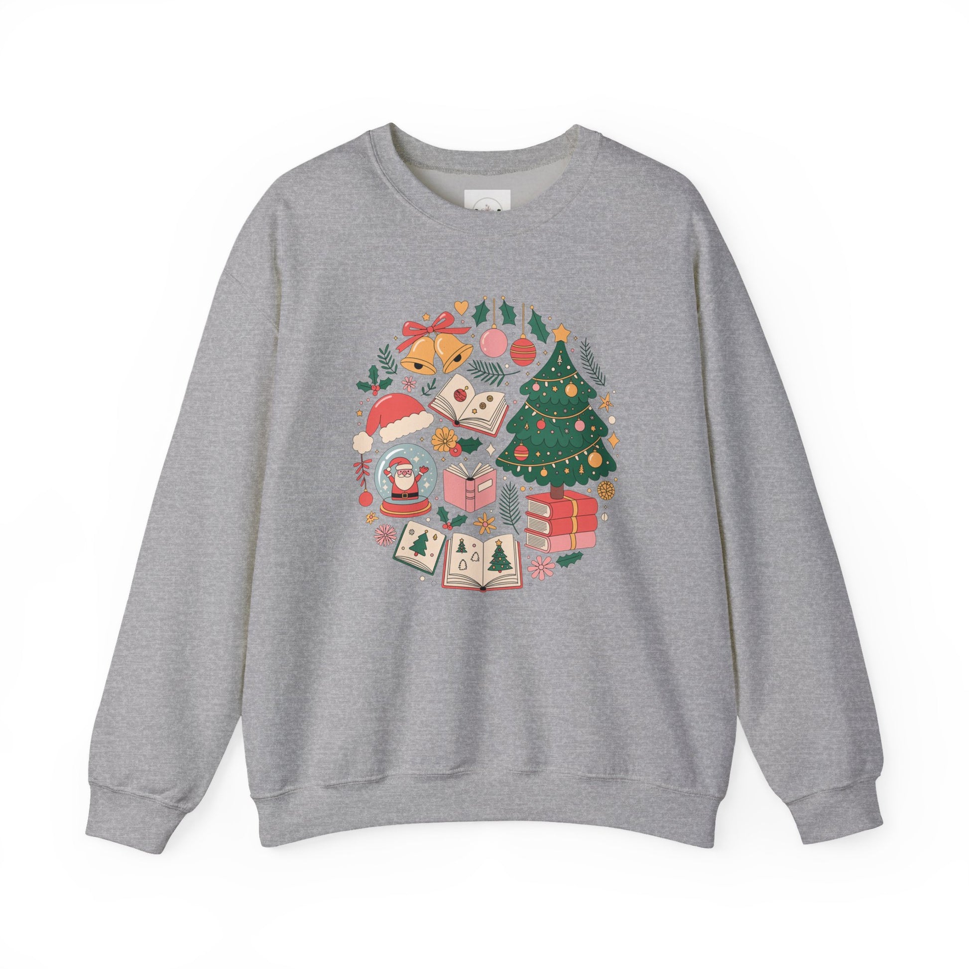 Celebrate the season in cozy, bookish style! This unisex crewneck features a whimsical vintage Christmas design filled with festive details—Santa, ornaments, bells, snow globes, a Christmas tree, and of course…books! 📚💕